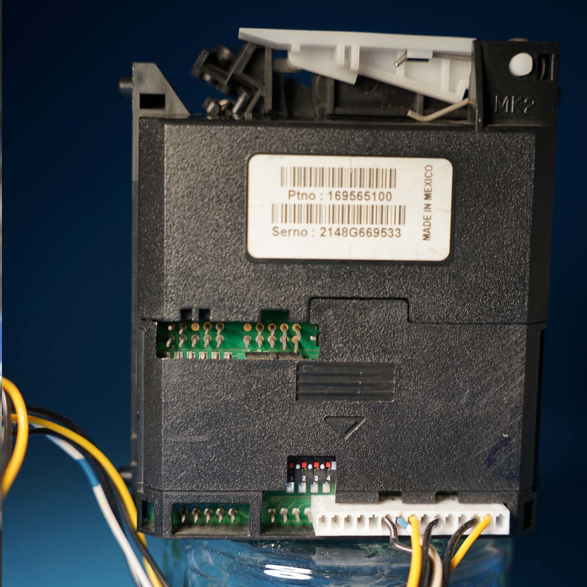 Once the L-brackets have been released the validator should be removed by pushing it to the right, looking at the back of the plastic cradle. Try and avoid disconnecting the wire connector located on the left of the validator (covered later in this article).