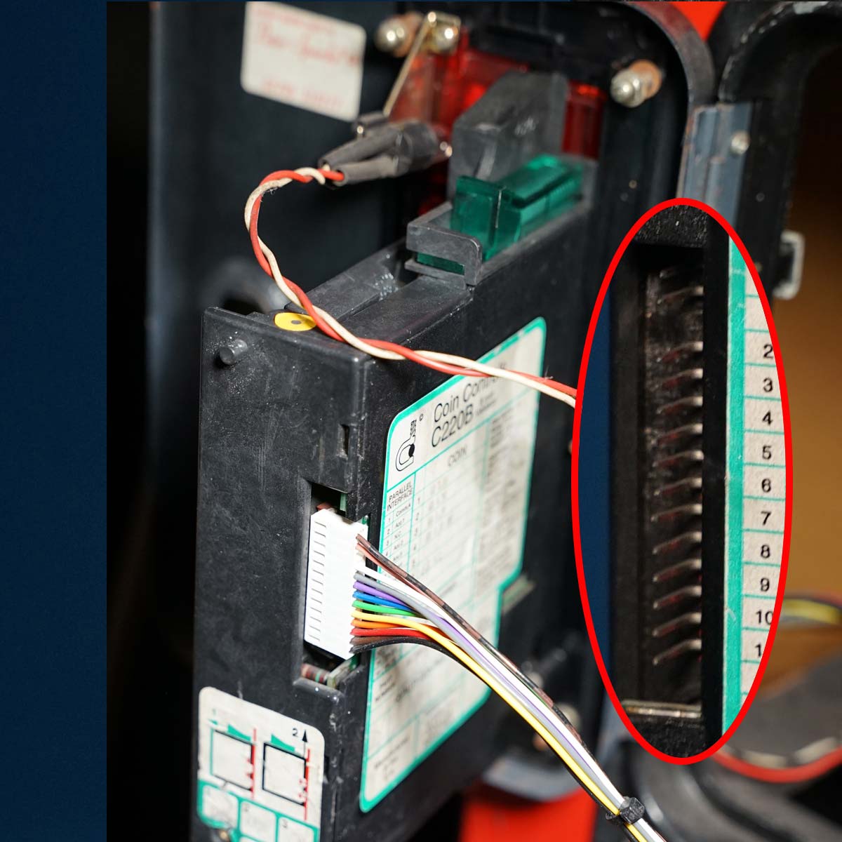 There is a 13way connector that plugs into a line of pins on the side of the validator.